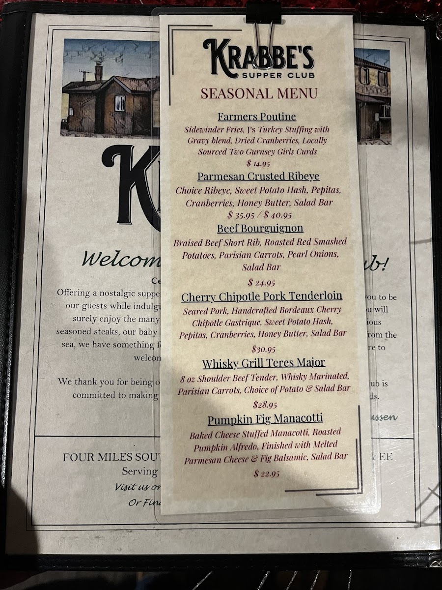 Noteworthy reviews highlight exceptional service and a homemade salad bar, enhancing the overall dining experience. With its warm ambiance and delectable dishes, Krabbe's Supper Club is a must-visit for food lovers seeking an authentic supper club experience.